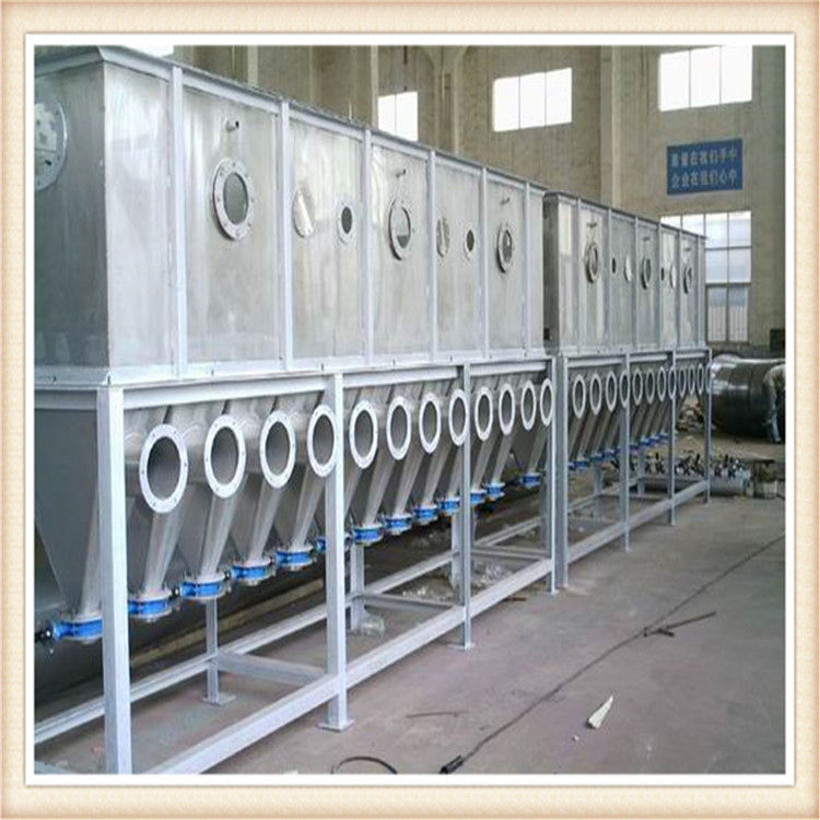 潔凈的熱風經(jīng)閥板分配進入床體內(nèi),從加料器進入的濕物料被熱風形成沸騰狀態(tài)。由于熱風與物料廣泛接觸,增強了傳熱傳質(zhì)的過程,因此在較短時間內(nèi)就可干燥。如用連續(xù)型,物料從床體的一頭進入,經(jīng)過幾十秒至幾分鐘沸騰干燥,自動從床體另一頭流出。本設(shè)備一般進行負壓操作。