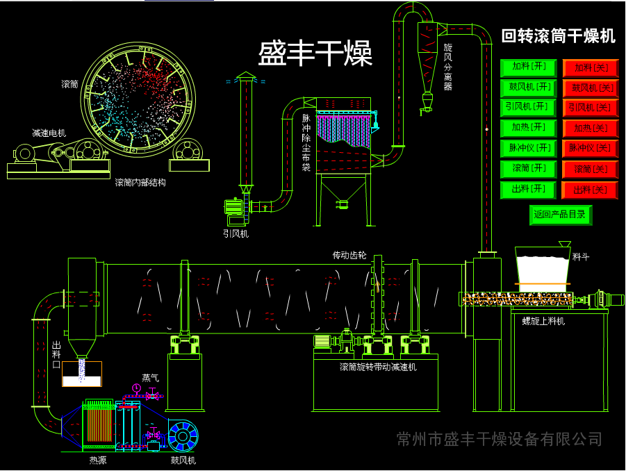 規格型號 功率 KW 外形尺寸mm3 ZXSH-10 4kw×2 φ1840×3500 ZXSH-20 3kw×4 φ2250×3000 ZXSH-30 5.5kw×4 φ2800×5500 ZXSH-40 5.5kw×4 φ2945×6000 ZXSH-50 7.5kw×4 φ3200×7000 ZXSH-60 11kw×4 φ3200×7500 *后干料進入外筒降溫冷卻到50~60℃之間再排出烘干機 -