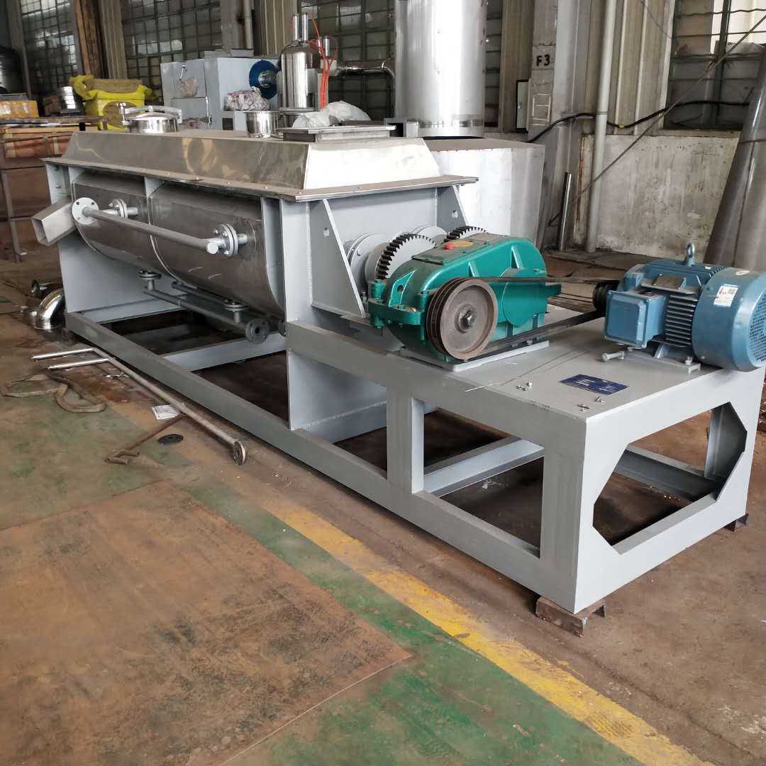 空心槳葉干燥機(jī)是一種以熱傳導(dǎo)為主的臥式攪拌型連續(xù)干燥設(shè)備。因攪拌葉片形似船槳,故稱槳葉干燥機(jī),國外也稱槽型干燥機(jī)或攪拌干燥機(jī)。因設(shè)備干燥所需要的熱量依靠熱傳導(dǎo)間接加熱,因此干燥過程不需或只需少量氣體以帶走濕份。*大地減少了被氣流帶走的這部分熱量損失,提高了熱量利用率,是一種節(jié)能型干燥設(shè)備。 槳葉干燥機(jī)廣泛應(yīng)用于石油化工、化工、冶金、食品、醫(yī)藥、農(nóng)藥等行業(yè)中粉狀、粒狀、濾餅狀、漿液狀物料的干燥。