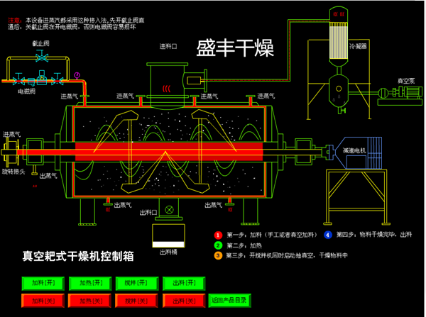 4、易于操作,可回收揮發氣體,減少了對環境的污染。耙式干燥機、小型污泥烘干機、真空污泥干燥機原理 干燥物料從殼體上方正中間加入,在不斷正反轉動的耙齒的攪拌下,物料軸向來回走動,與殼體內壁接觸的表面不斷更新,受到蒸汽的間接加熱,耙齒的均勻攪拌,粉碎棒的粉碎,使物料表面水分更有利的排出,氣化的水分經除塵器、冷凝器,從真空緩沖罐出液口處排放。