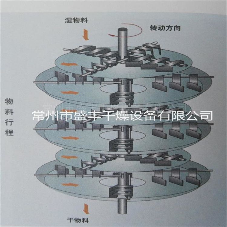 盤式干燥機主要由外殼、機電、加料器、加熱盤、主軸、上下軸承、耙臂、耙葉等組成。